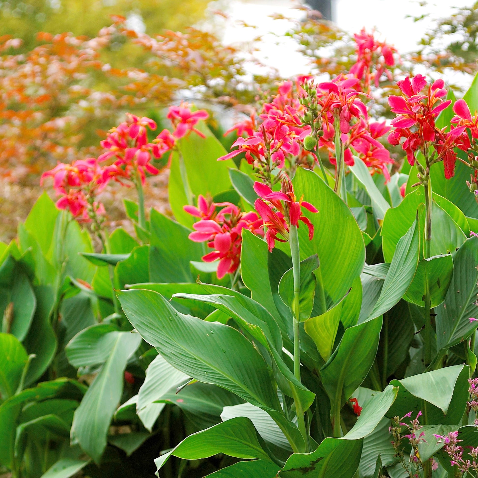 The Cannas plant is an excellent choice for enhancing any summer space. With its compact size, it can easily fit into various areas, making it a versatile addition to your garden or patio. One of the standout features of the Cannas plant is its large, vibrant blooms. These flowers are not only visually stunning, but they also serve as a fantastic way to inject a pop of color into your desired space. Whether you're looking to brighten up a corner of your yard or add a touch of nature to your outdoor seating area, the Cannas plant is sure to deliver!