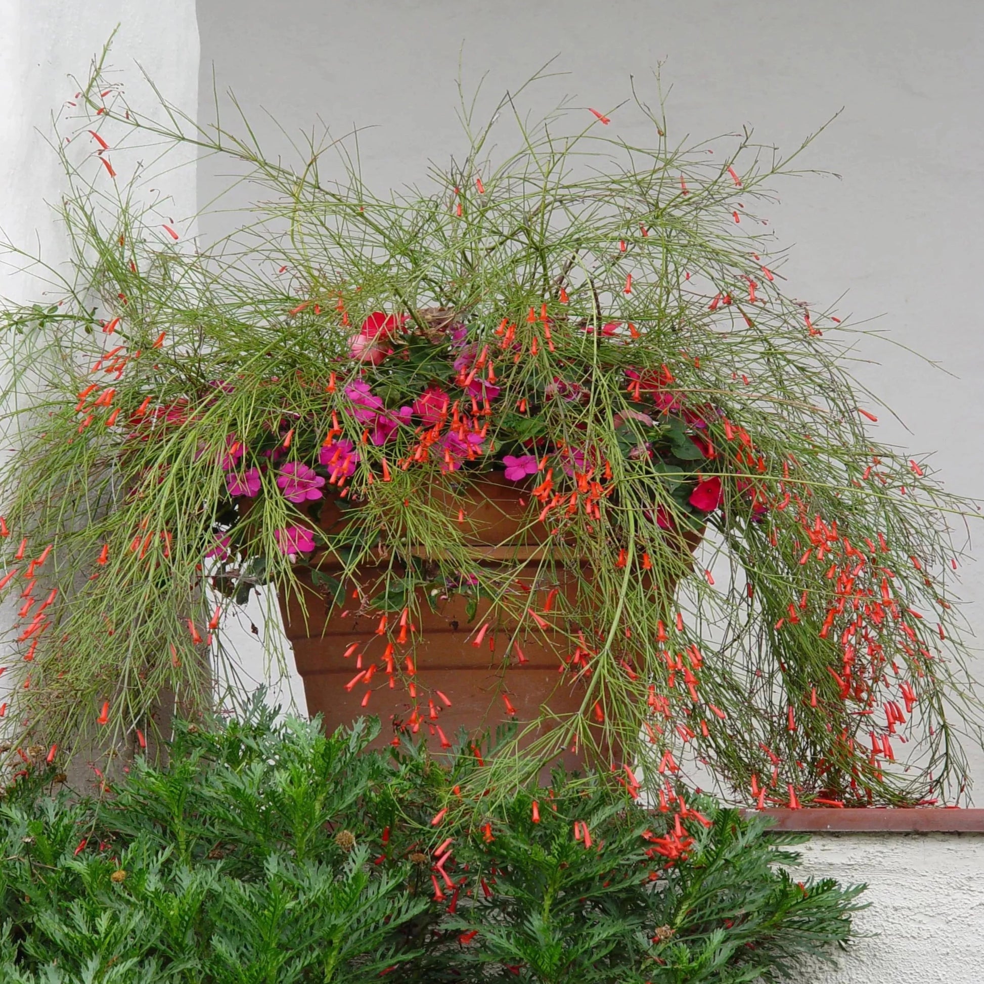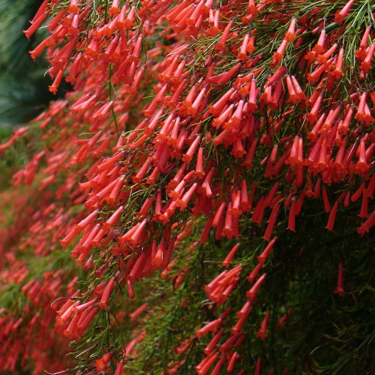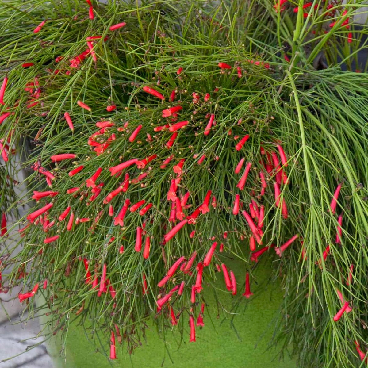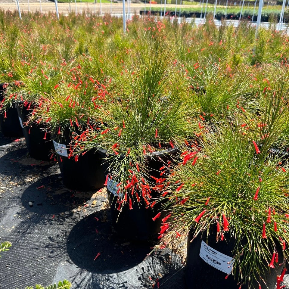 Add some red color to your landscape with the notorious Firecracker! The addition of one of these shrubs can soften and highlight an otherwise well trimmed landscape. The fine textured waterfall of stems with sparkling red flowers has more of a wildflower, cottage garden appeal. Stun your neighbors with this plant in your garden!