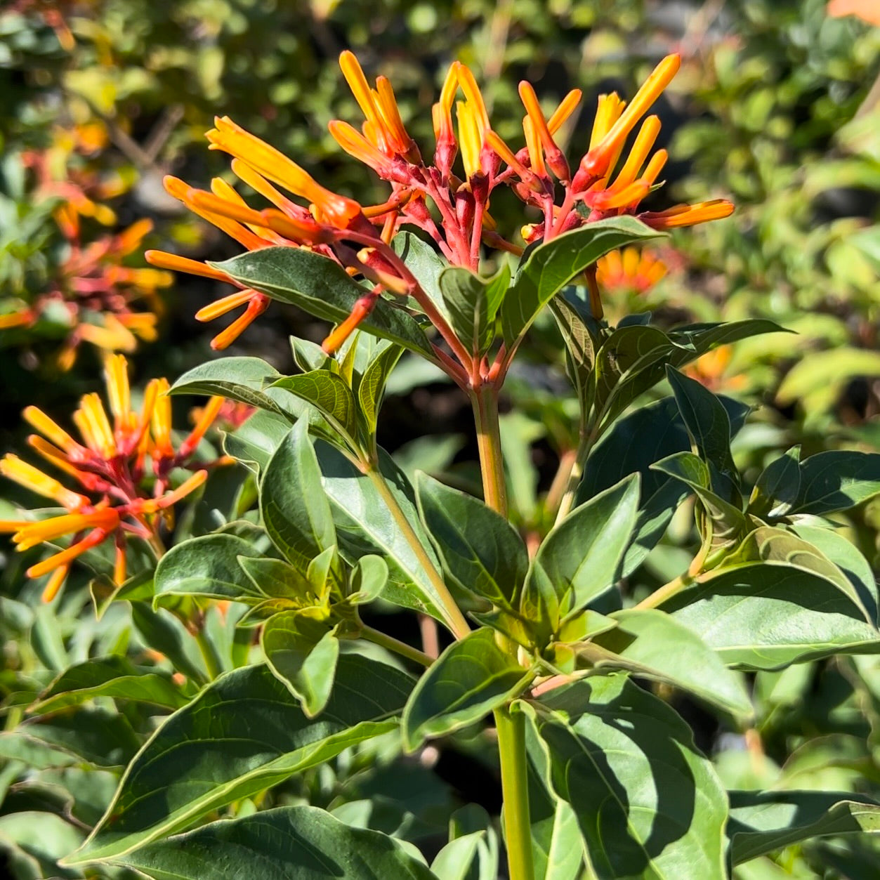 A South Florida Native! Love Butterflies and birds? This plant is for you! Firebush is a perennial or semi-woody shrub that is known scientifically as Hamelia patens. Gardeners love firebush because it produces flowers from late spring until the first frost, and the bright red flowers attract hummingbirds and butterflies, including the zebra longwing and gulf fritillary butterflies. Song birds also like to feed on the berries. Because it is a native, this plant requires little maintenance as it is already acclimated to Floridas environment. This plant is also susceptible to few diseases and pests as it is part of our local ecosystem!