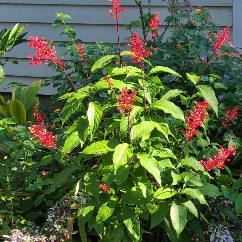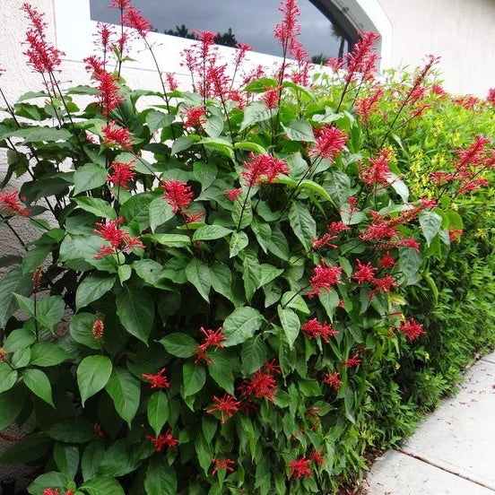 The firespike plant is a great way to add a pop of color to your landscape! This plant grows 4 to 6 feet tall and produces clusters of 3-inch-long, tubular red or purple flowers. The foot-long spikes of showy flowers appear year-round in South Florida and attracts hummingbirds and several species of butterflies that feed on the nectar!