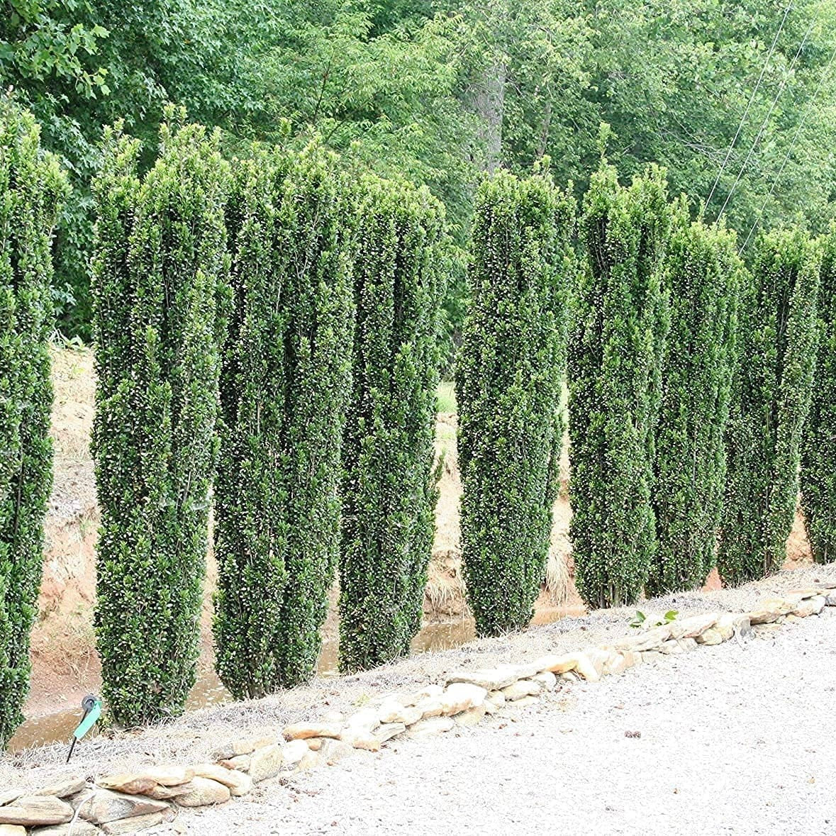 The Japanese Holly's dense growth habit and ability to be pruned make it ideal for creating low-maintenance hedges and screens. It is a broadleaf evergreen shrub known for its dense, rounded growth habit and small, glossy dark green leaves. It is also known for its upwards growth pattern, giving that perfect modern edge to any landscape!