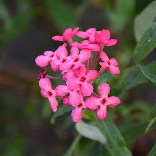 The Panama Rose has glossy, dark green leaves and bears clusters of tubular, pink flowers with yellow centers. This plant can be used as a specimen plant, a hedge, or in containers. It's also a great choice for butterfly gardens due to its abundant blooms and sweet fragrance! This plant is relatively low-maintenance and can be easily pruned to control its size and shape. It is a multi-stemmed shrub that can grow up to 5-6 feet tall!
