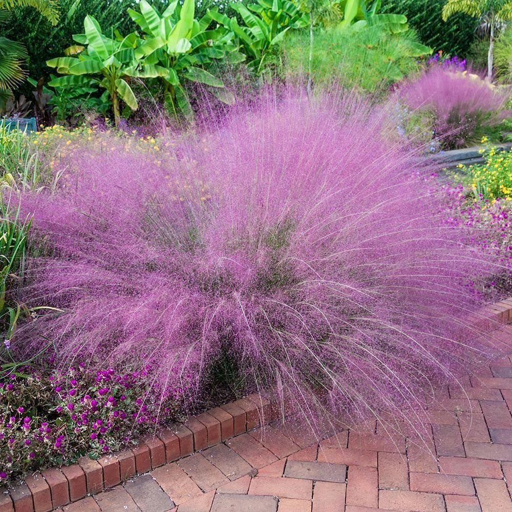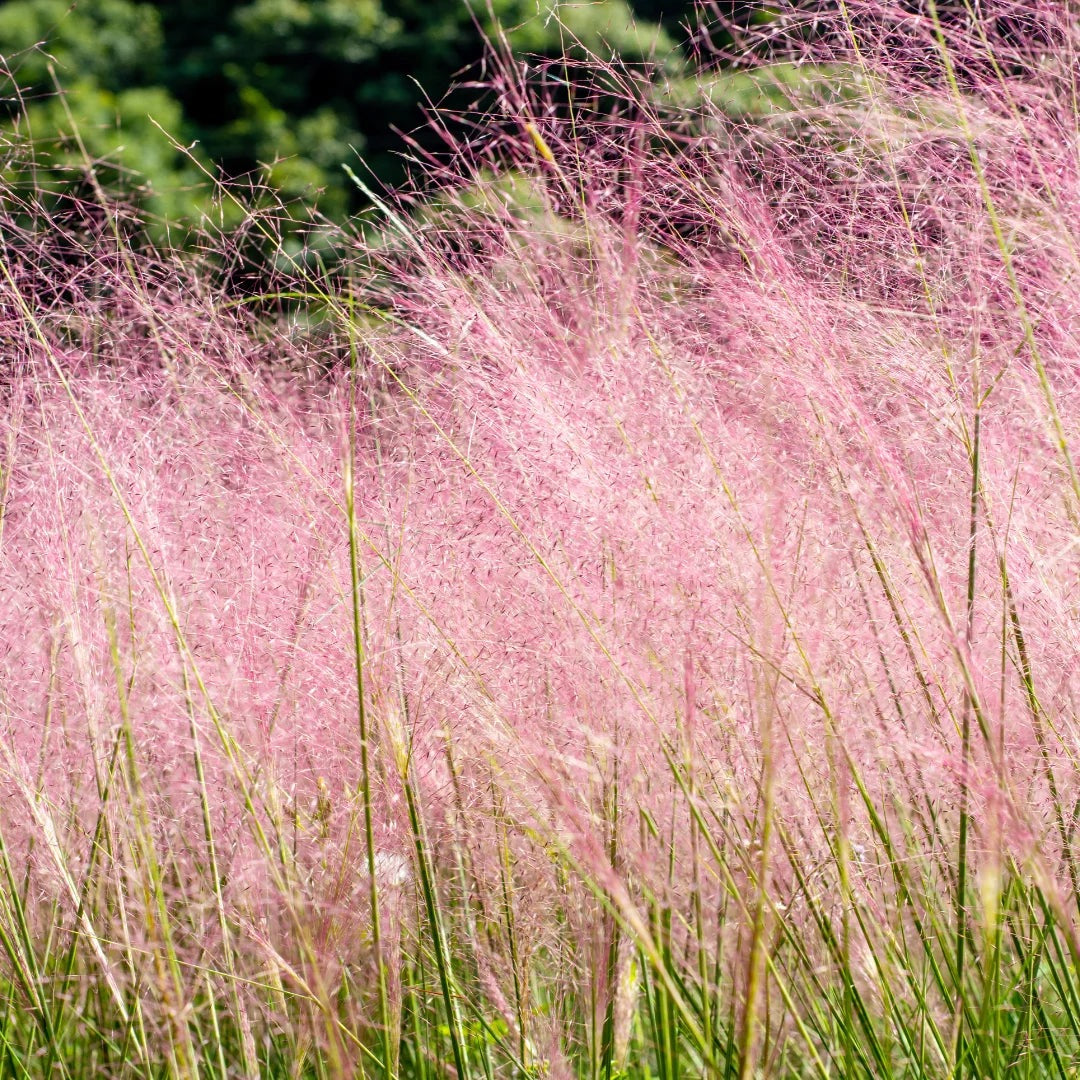 Pink Muhly Grass—an elegant addition that transforms any landscape with its soft, pink hues. Once established, it requires minimal water, making it an ideal choice for those who want a lush landscape without the labor. Its drought-resistant nature ensures it thrives even in dry climates, allowing you to enjoy a vibrant yard all year round.With its compact, upright growth habit, this grass fits perfectly along borders, in containers, or as a striking focal point in your landscape design.