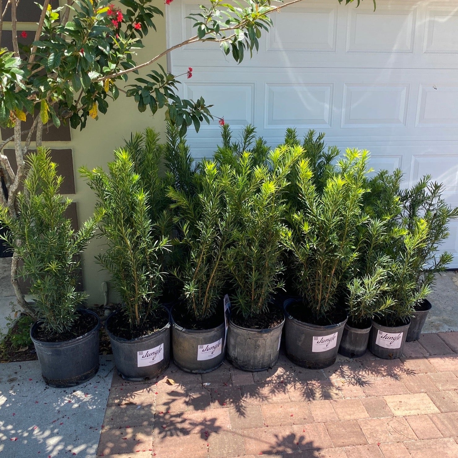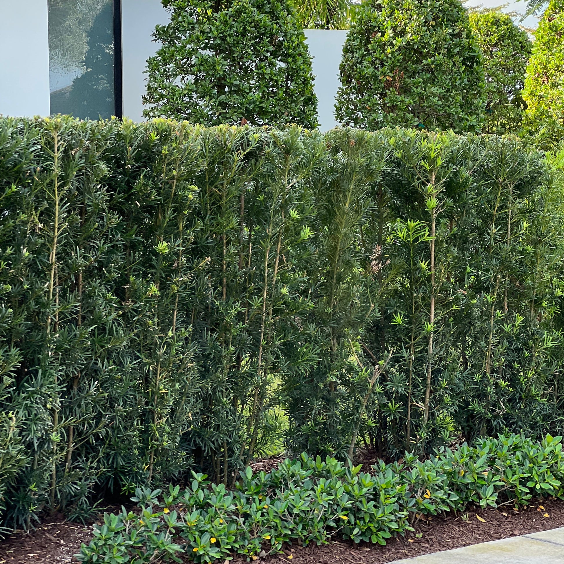 Have a modern or contemporary garden? This is the plant or privacy hedge for you. Works as part of a layered hedge, line a driveway or bed line, or used for a large privacy hedge. Dark green leaf, low maintenance and can be kept very tight and formal. You also can use hedge trimmers for this plant for fast pruning and trimming. It grows relatively fast so whether you start with the 3 gallon size or the 25 gallon size, you are sure to have a lush privacy hedge in no time! One of our top picks for a modern garden!