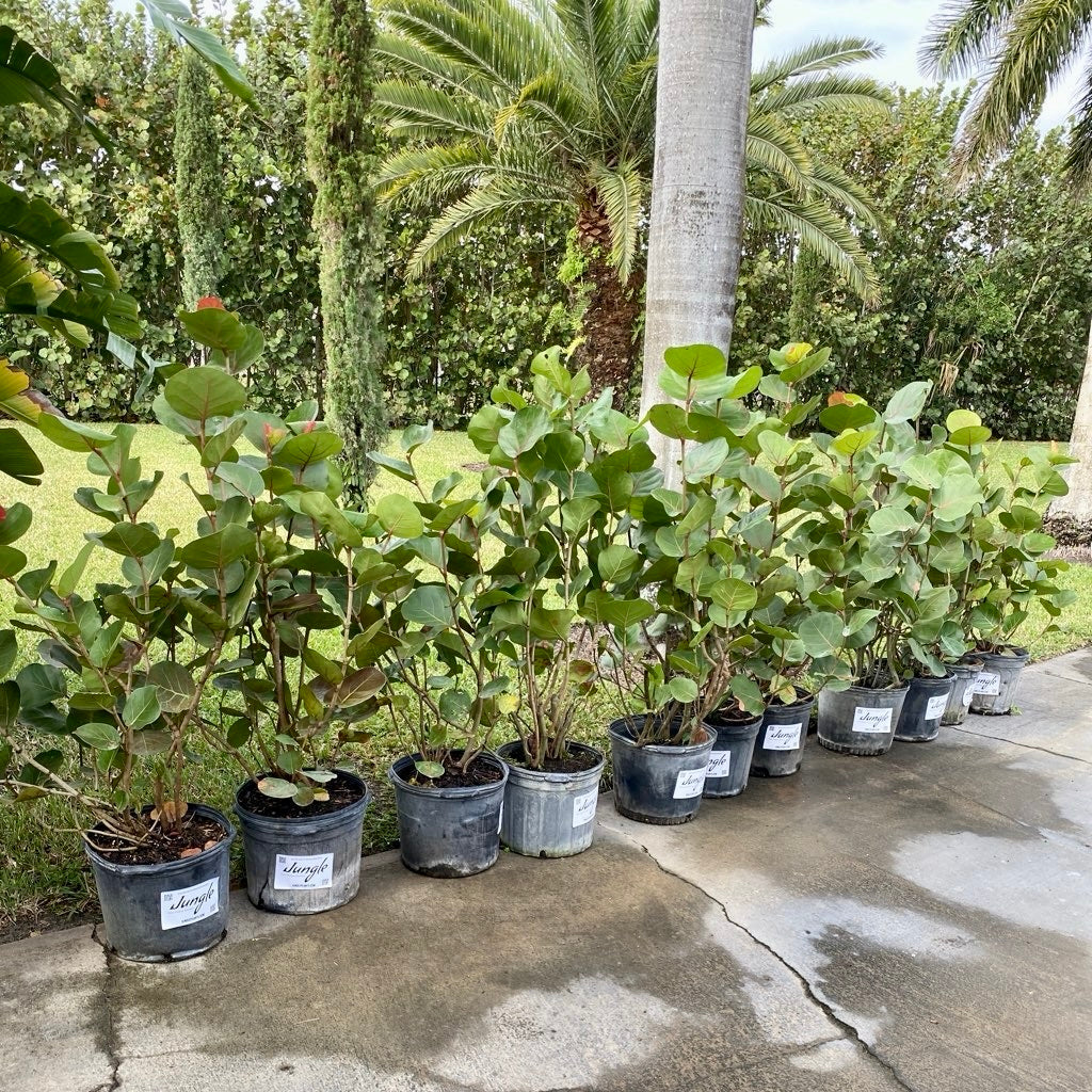 South Florida Native!! Ever been to the beach? Or down the intercostal waterway? Then you have seen the famous Sea Grape. This plant loves salt and is used widespread throughout South Florida. As small shrubs, Small trees, or even specimen pieces in your landscape. The Sea Grape is very hardy and one of our top picks!