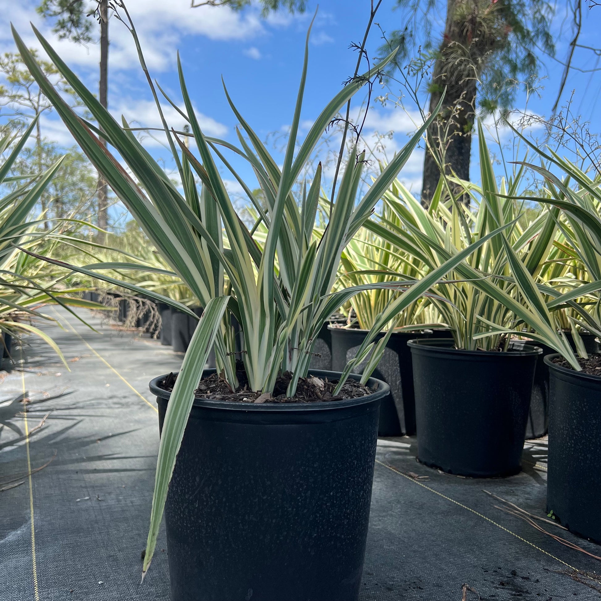 The Variegated Flax Lily is perennial plant that can be identified by its cream colored variegation! This plant can be mass planted or used as landscape accents, staying relatively short at 1-1.5 feet tall. Its beautiful stripes make for an eye catching feature to any landscape!